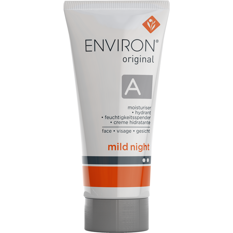 - After pre-cleansing, cleansing and toning with your preferred Environ products, apply Original Mild Night Moisturiser to the face, neck and décolleté in the evening.