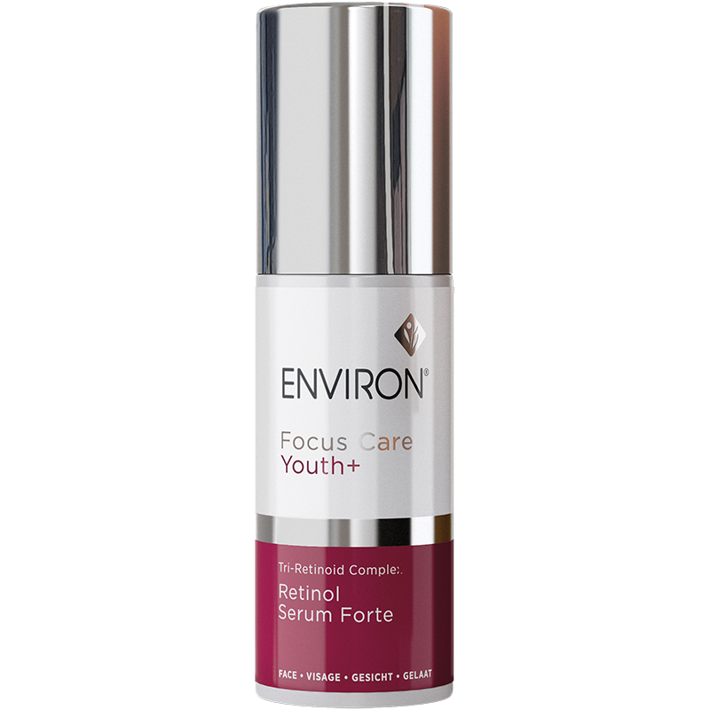 Retinol Serum Forte is a step-up retinol booster to be introduced when skin is comfortable with Environ’s Retinol Serum. This serum intensifies the benefits of vitamin A micronutrition for the skin with additional phyto-retinol boosters; Revinage® and NovoRetin™. These specialised ingredients assist to further promote overall skin longevity and youthfulness. Tolerance Tested. Swiss Vitamin Institute Certified.