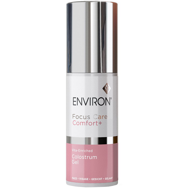 - Apply Colostrum Gel evenly to the face, neck and décolleté or any focus area of sensitivity before moisturising with your regular vitamin A enriched Environ moisturiser.